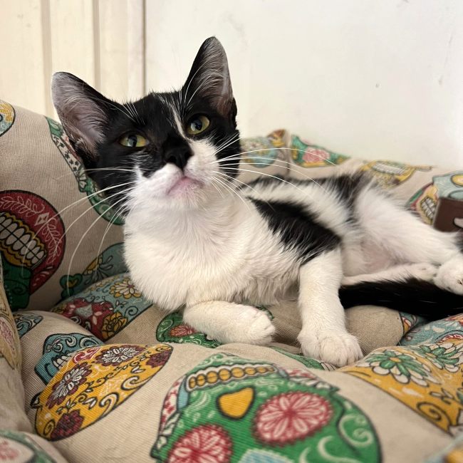 És una gateta, de tan sols 4 mesos, que fa massa dies que està tancada sola en una gàbia curant-se d’un refredat. És bona, afectuosa i roncadora. No mereix passar gairebé tot el dia sola.